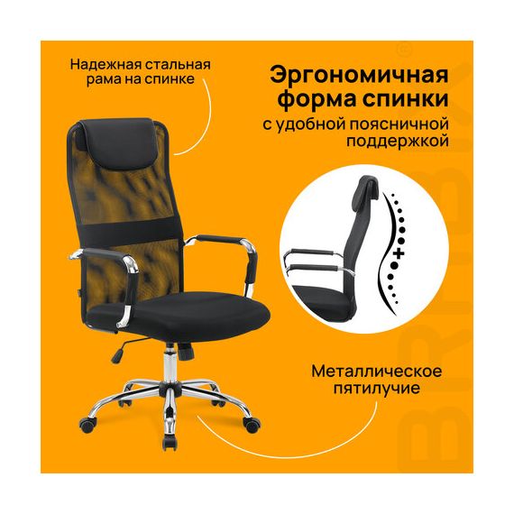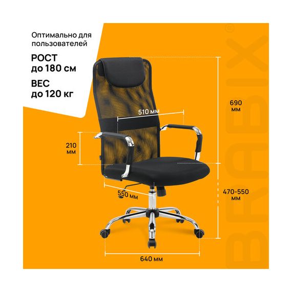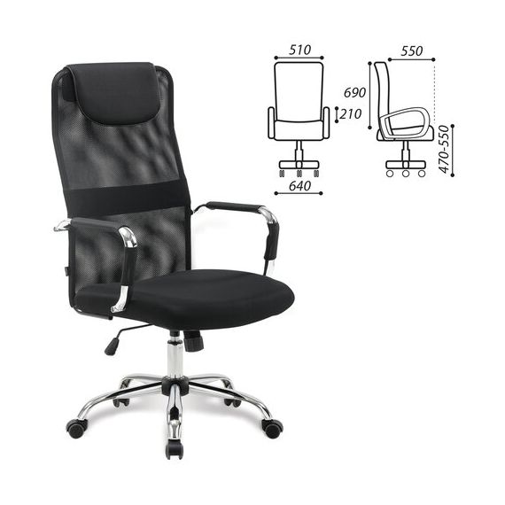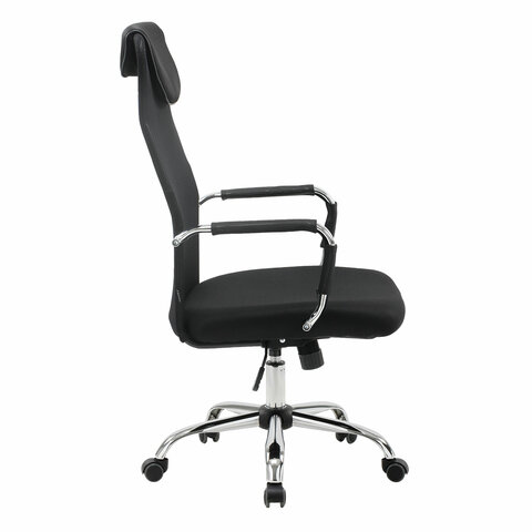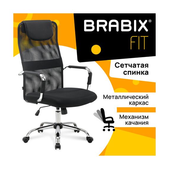 Кресло офисное BRABIX "Fit EX-514", с подголовником, хром, черное, 531949