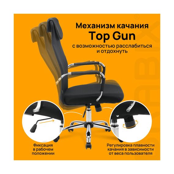 Надежный механизм качания "Top Gun" позволяет осуществлять свободное качание с фиксацией в рабочем положении и регулировки наклона под вес сидящего. Он помогает обеспечить хорошую поддержку спины и поясницы.