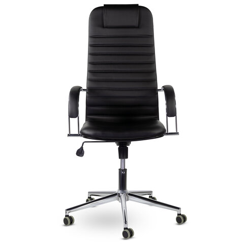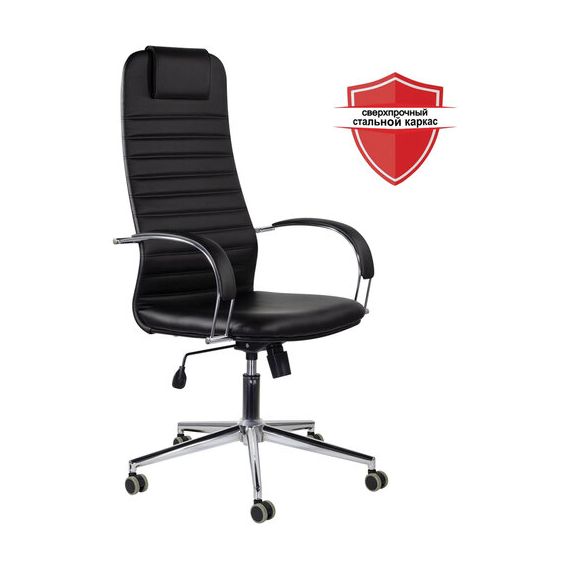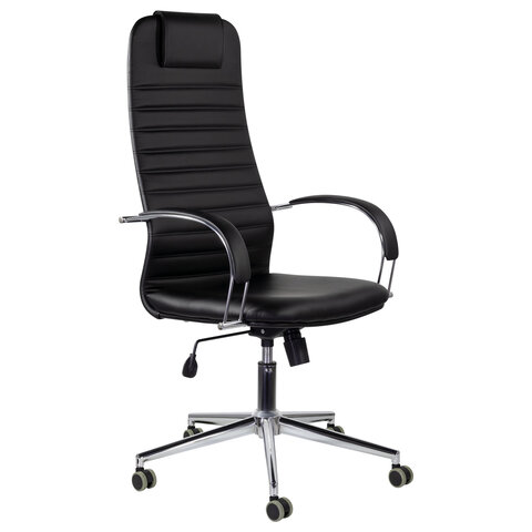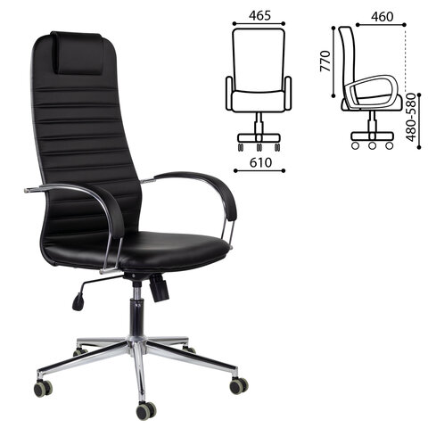 Кресло офисное BRABIX "Pilot EX-610 CH" premium, хром, кожзам, черное, 532418