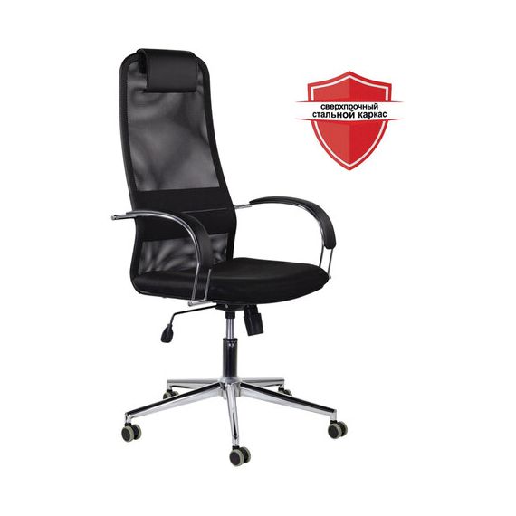 Кресло офисное BRABIX "Pilot EX-610 CH" premium, хром, ткань-сетка, черное, 532417