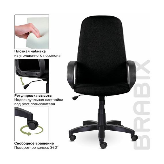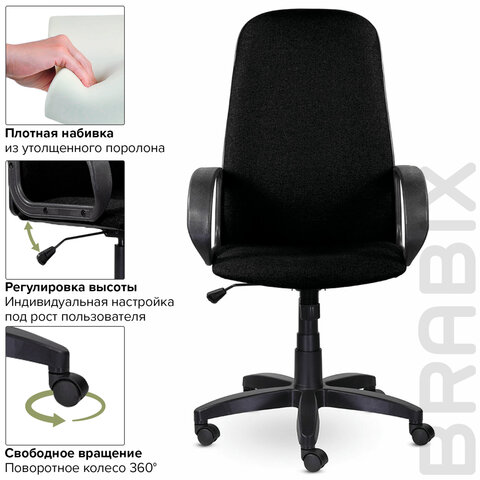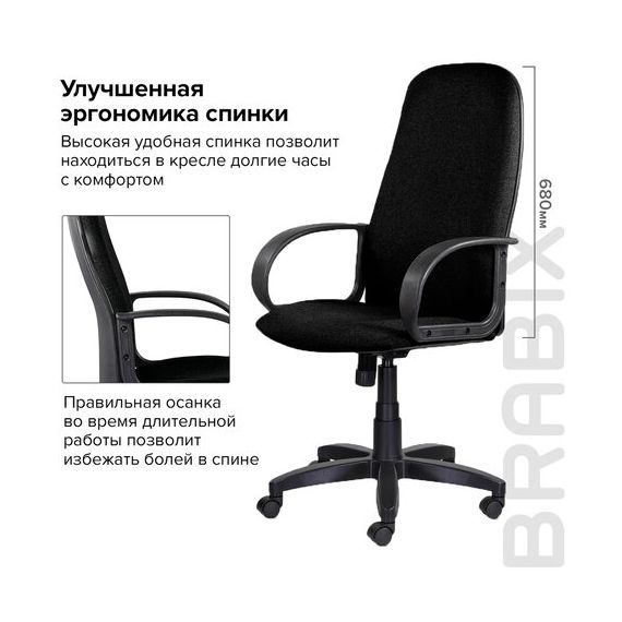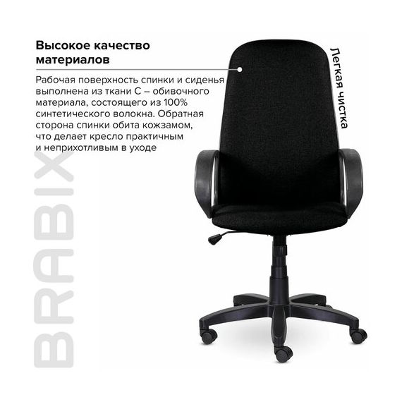 Кресло офисное BRABIX "Praktik EX-279", ткань/кожзам, черное, 532017