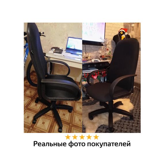 Рабочая поверхность спинки и сиденья выполнена из ткани C - обивочного материала, состоящего из 100% синтетического волокна. Обратная сторона спинки обита кожзамом, что делает кресло практичным и неприхотливым в уходе.