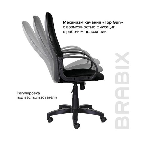 Модель оснащена механизмом качания "Top-Gun" с регулировкой под вес и возможностью фиксации в рабочем положении.