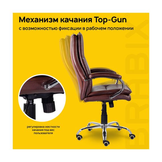 Надежный механизм "Top Gun" гарантирует хорошую поддержку спины и комфорт за счет возможности свободного качания с фиксацией в одном рабочем положении и регулировкой усилия качания под вес сидящего, позволяет регулировать высоту сиденья.