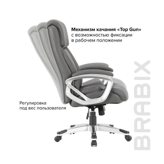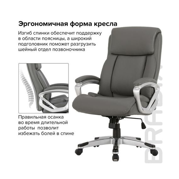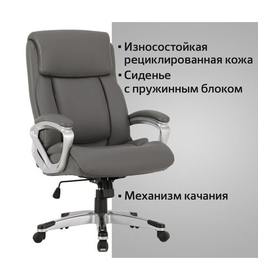 Кресло офисное BRABIX PREMIUM "Level EX-527", пружинный блок, рециклированная кожа, серое, 531937