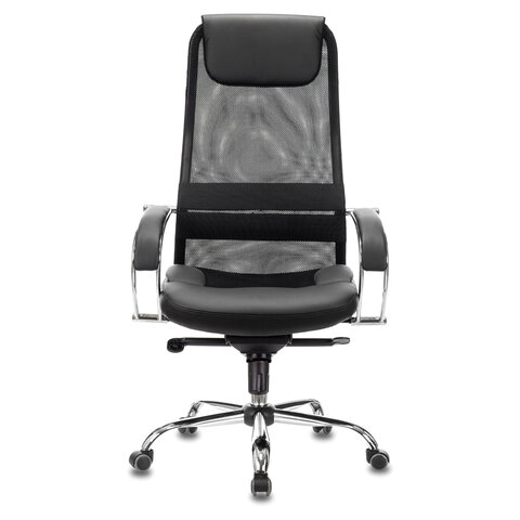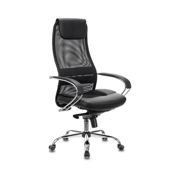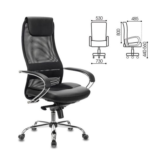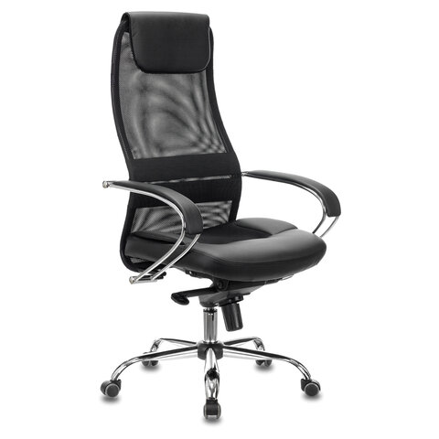 Кресло офисное BRABIX PREMIUM "Stalker EX-609 PRO", хром, мультиблок, ткань-сетка/экокожа, черное, 532416, EX609PRO_532416