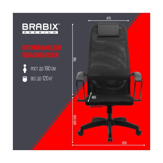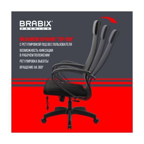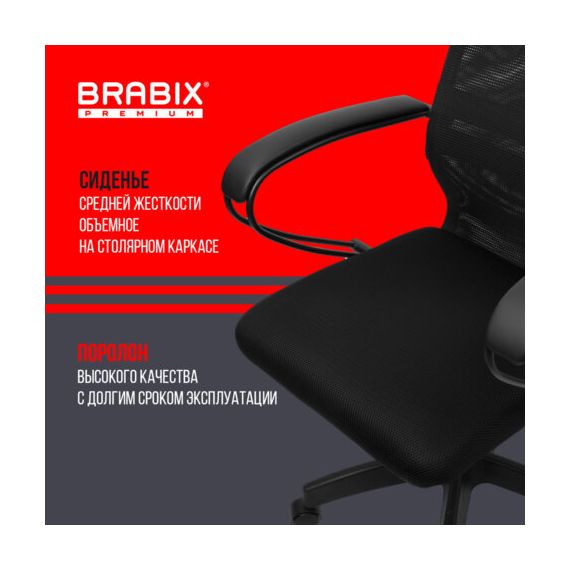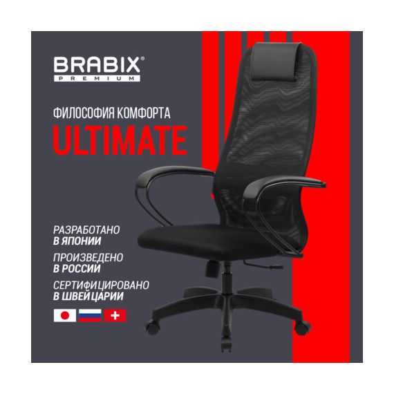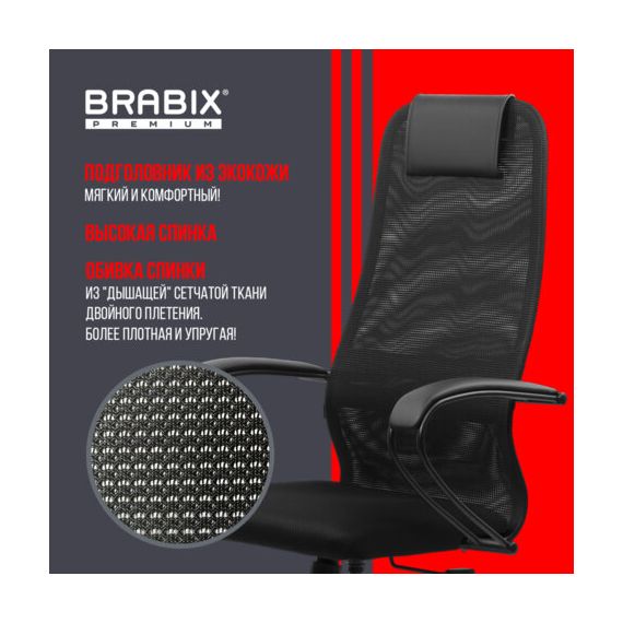 Кресло офисное BRABIX PREMIUM "Ultimate EX-800" пластик, плотная двойная сетка Х2, черное, 532914