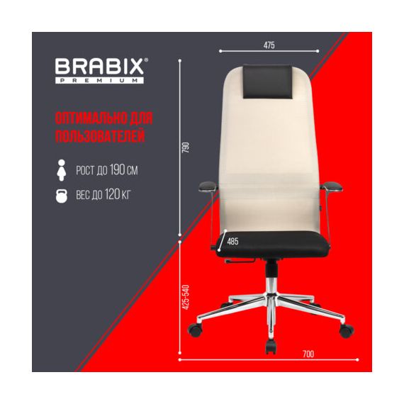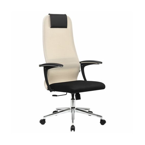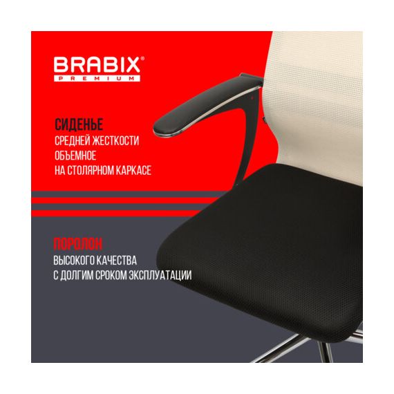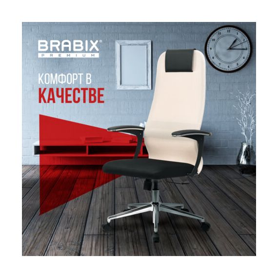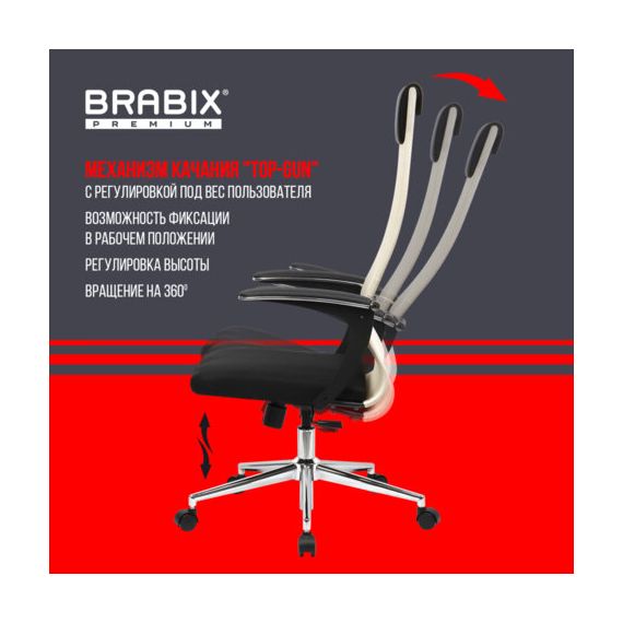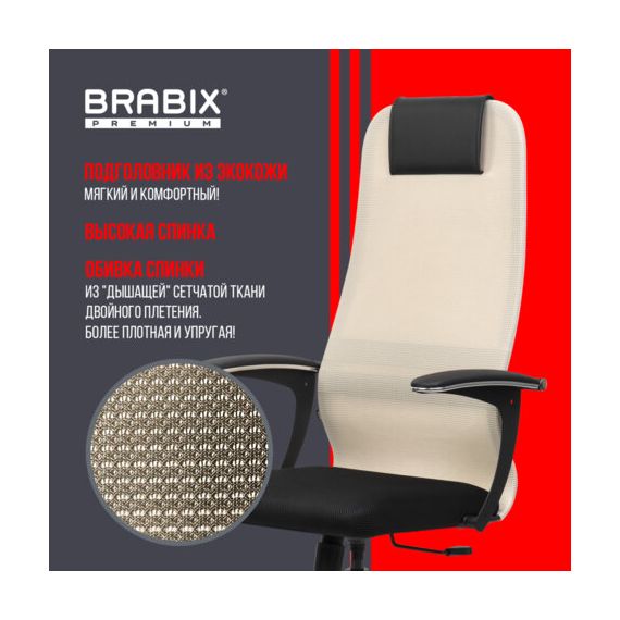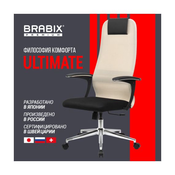 Кресло офисное BRABIX PREMIUM "Ultimate EX-801" хром, плотная двойная сетка Х2, черное/бежевое, 532919