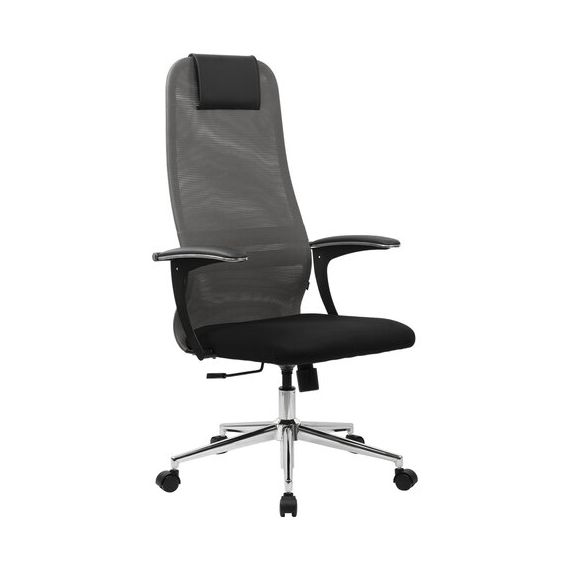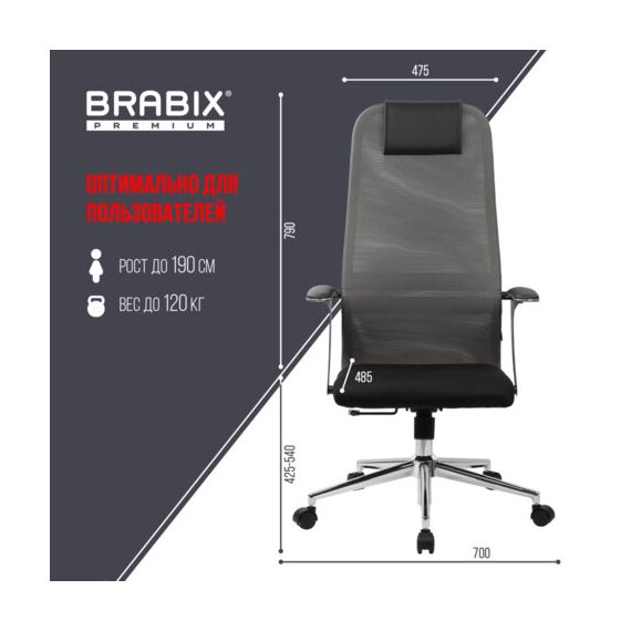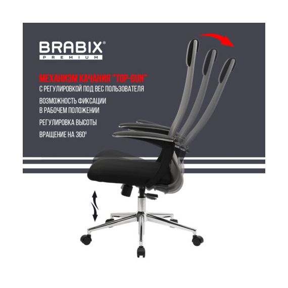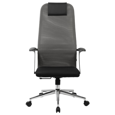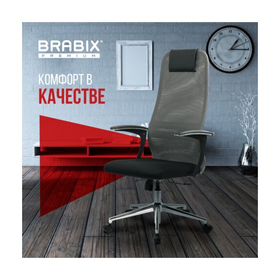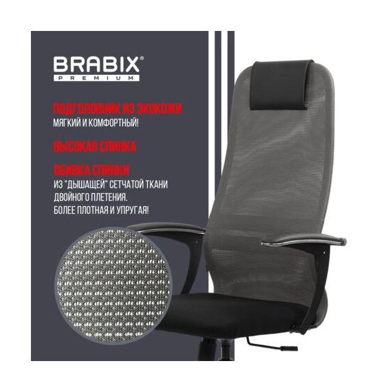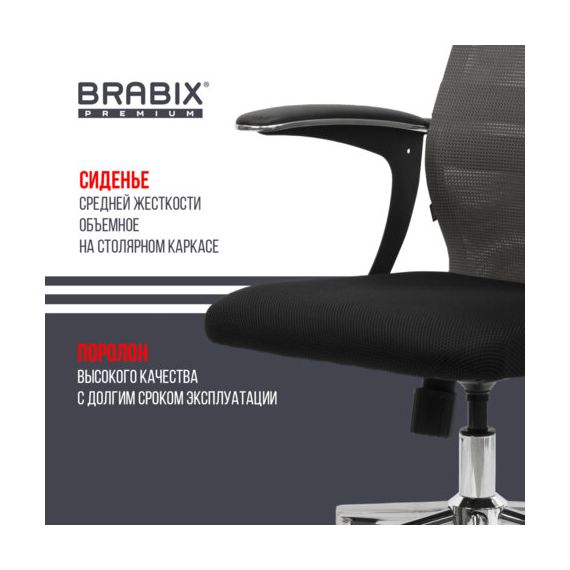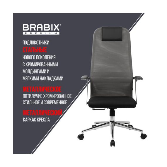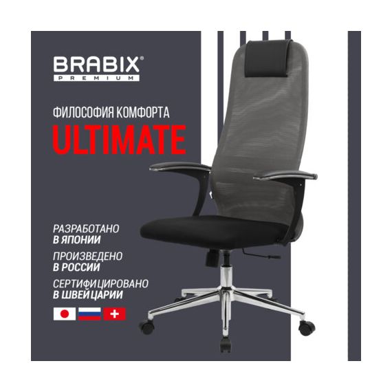 Кресло офисное BRABIX PREMIUM "Ultimate EX-801" хром, плотная двойная сетка Х2, черное/серое, 532918