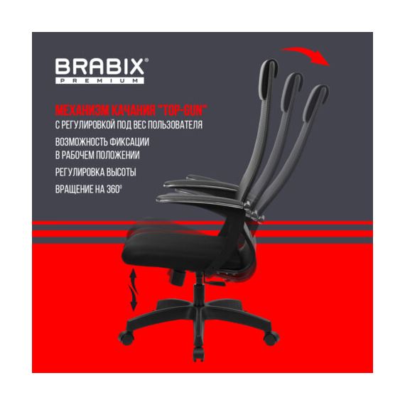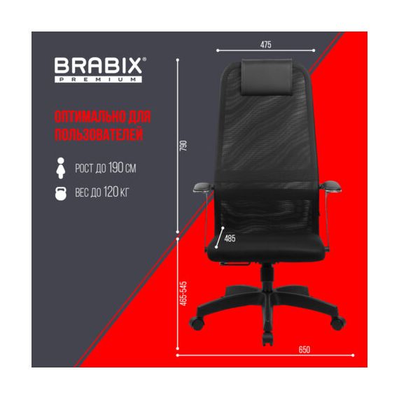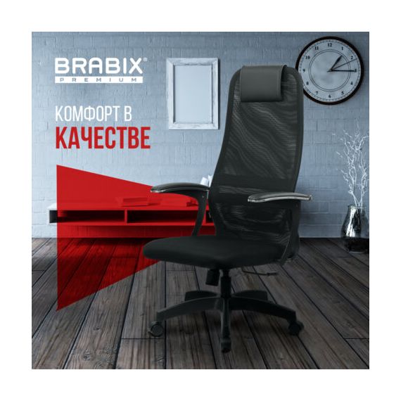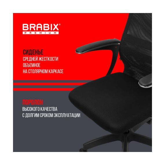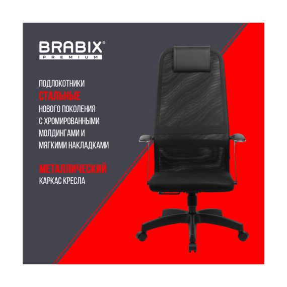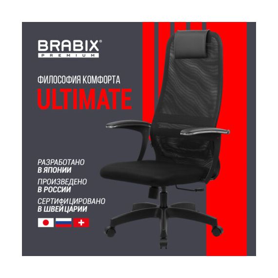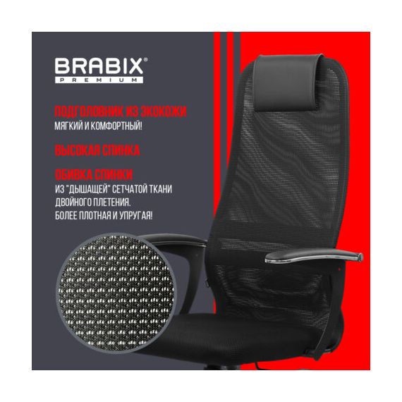 Кресло офисное BRABIX PREMIUM "Ultimate EX-801" пластик, плотная двойная сетка Х2, черное, 532922