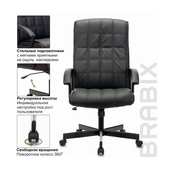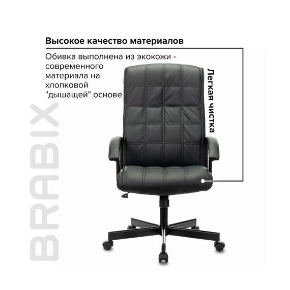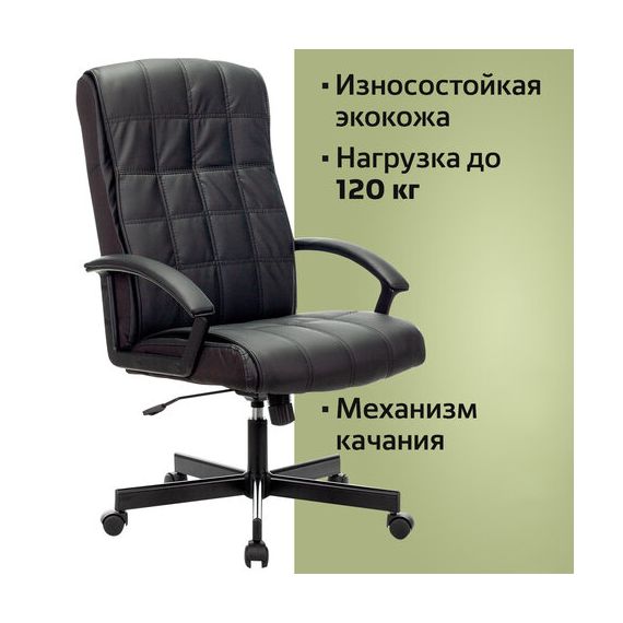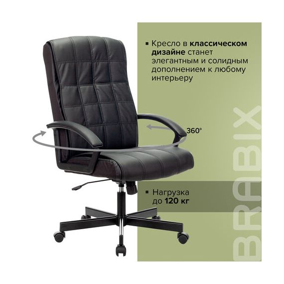 Кресло офисное BRABIX "Quadro EX-524", компактная упаковка, экокожа, черное, 532104
