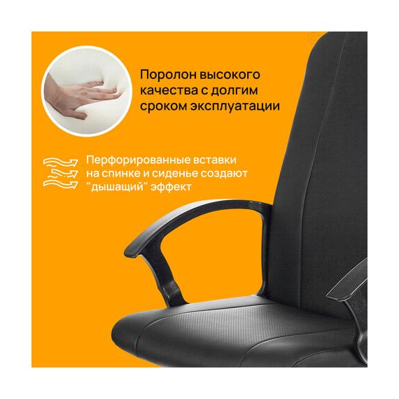 Материал обивки искусственная кожа (экокожа) - практичный и неприхотливый в уходе материал. Улучшает пропускную способность воздуха наличие перфорированных вставок на спинке и сиденье, что положительным образом сказывается на комфорте во время эксплуатации.