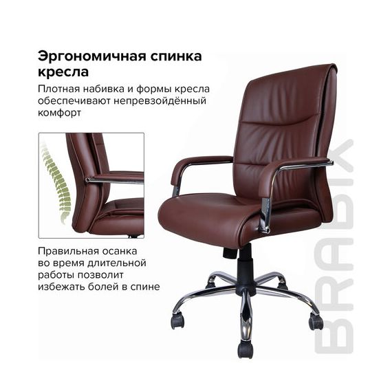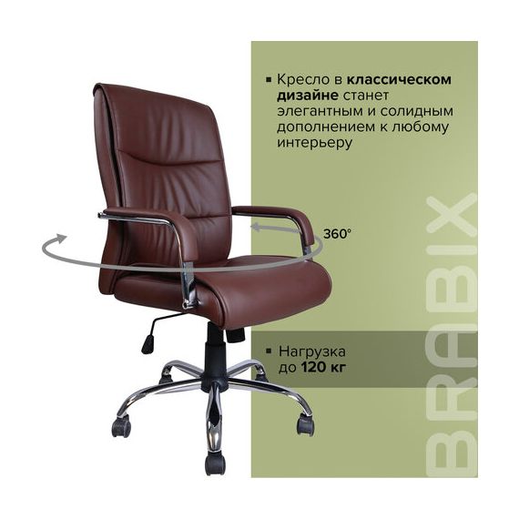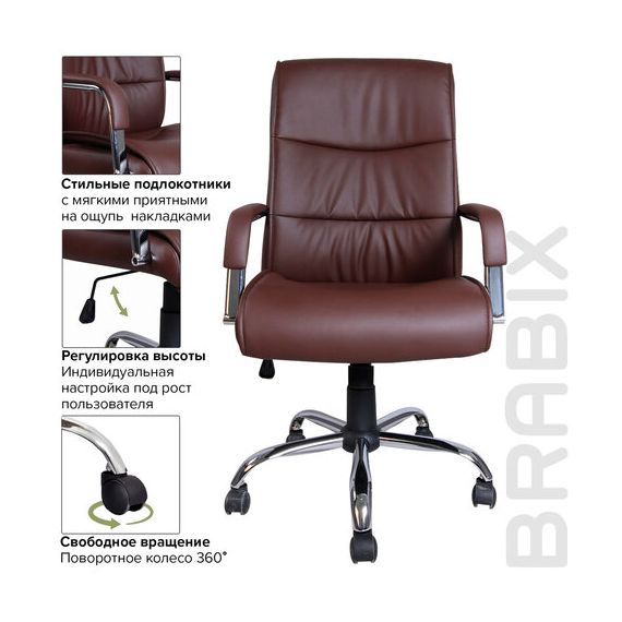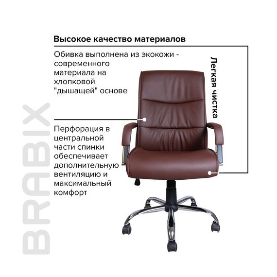Кресло офисное BRABIX "Space EX-508", экокожа, хром, коричневое, 531164
