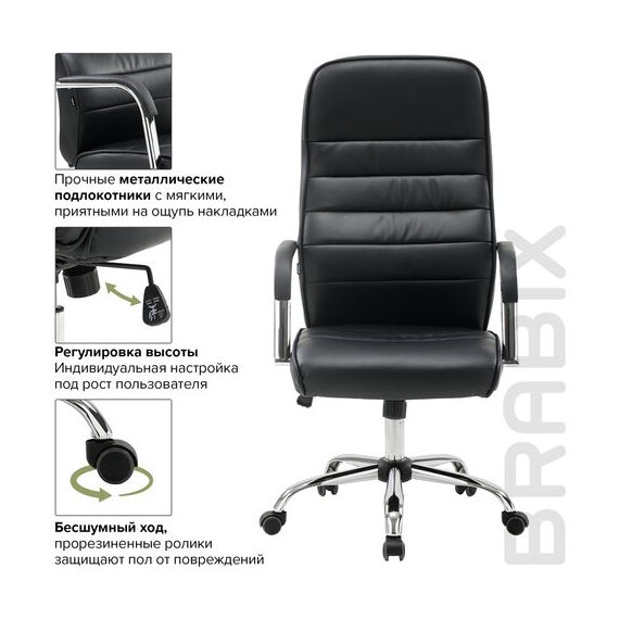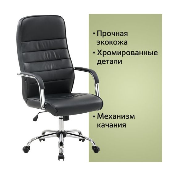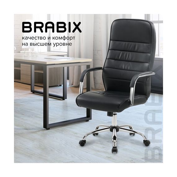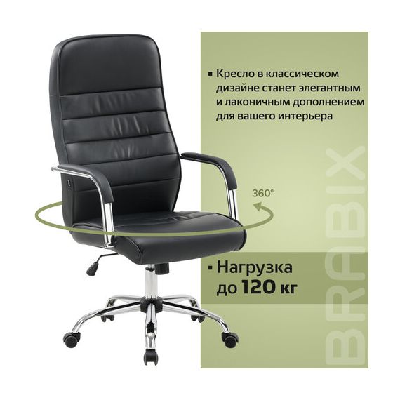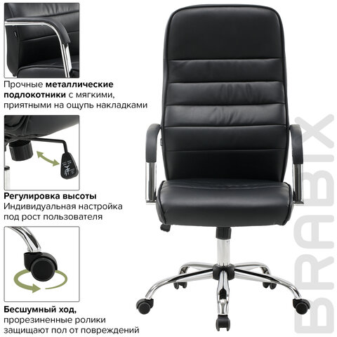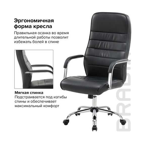 Кресло офисное BRABIX "Stark EX-547", экокожа, хром, черное, 531948