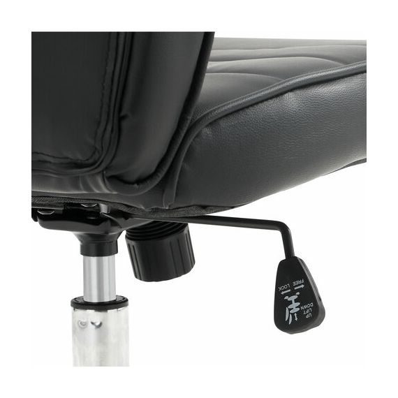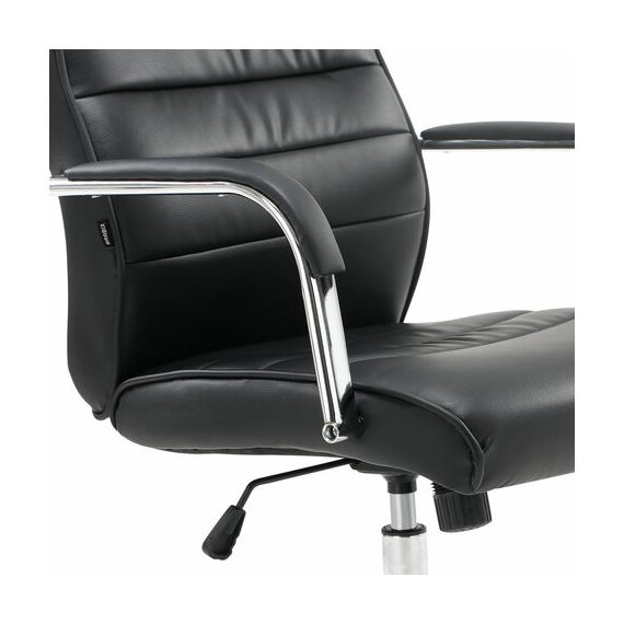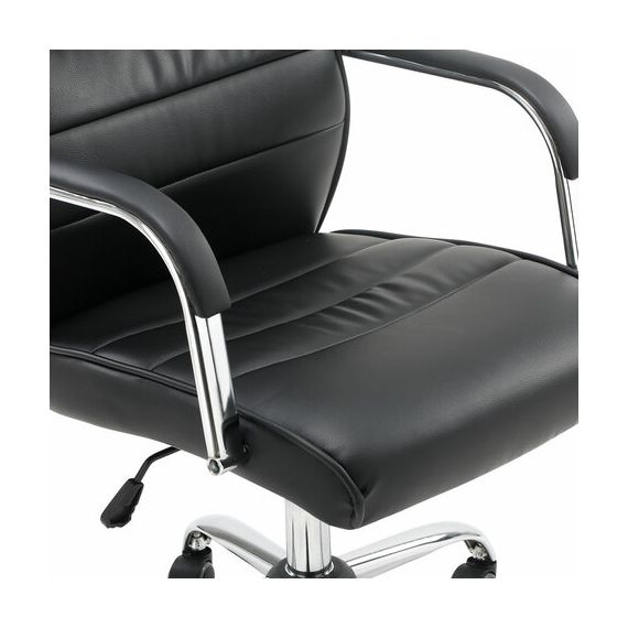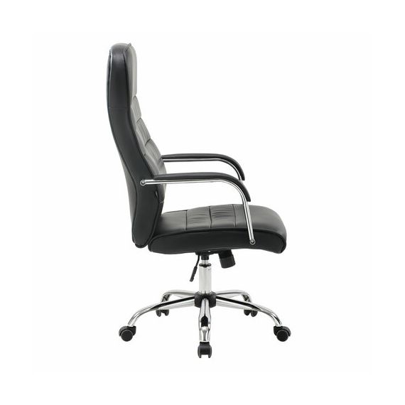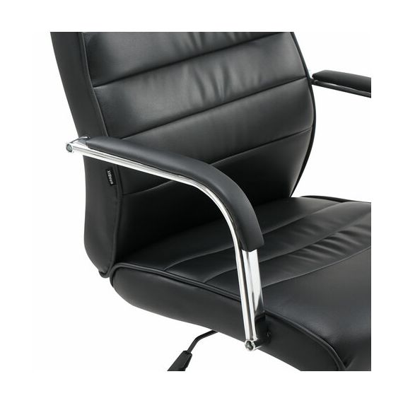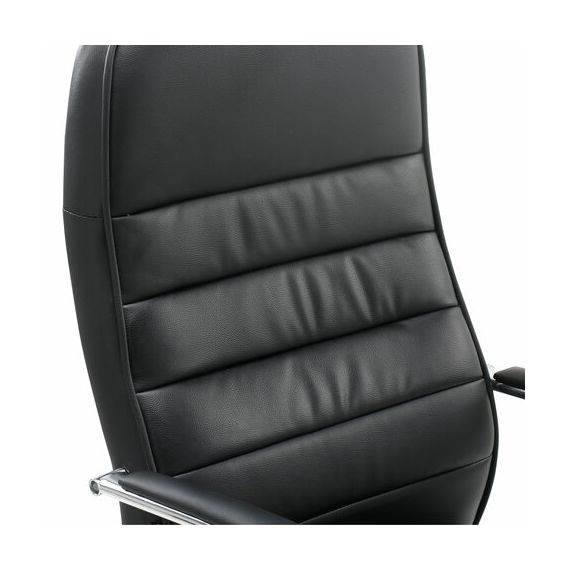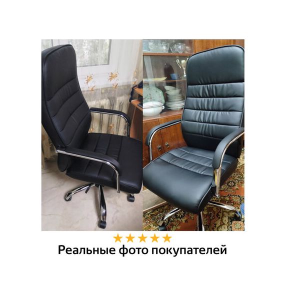 Высокая, эргономичная спинка и хромированные подлокотники с накладками из экокожи обеспечат пользователя необходимым комфортом.