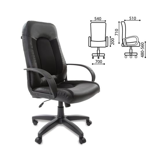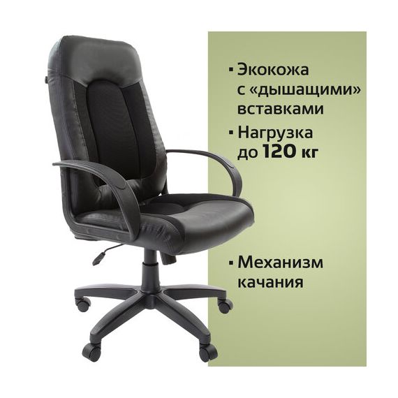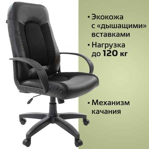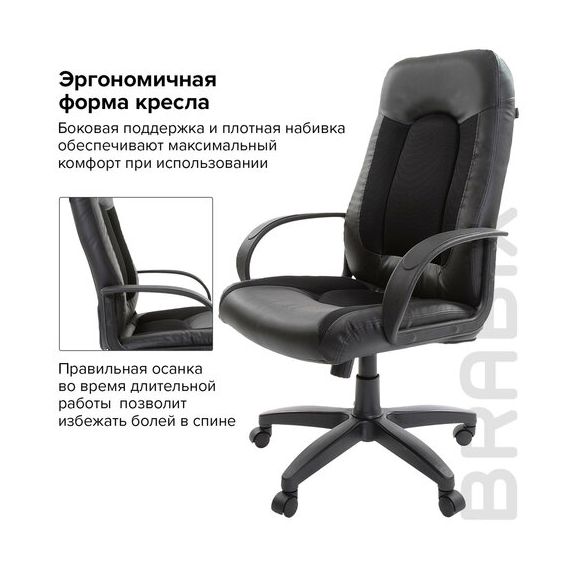 Кресло офисное BRABIX "Strike EX-525", экокожа черная, ткань черная, TW, 531381