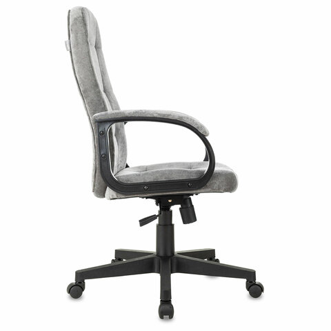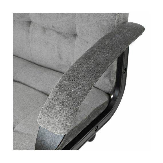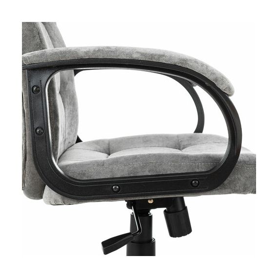 Подлокотники кресла выполнены из прочного пластика черного цвета с мягкими накладками.