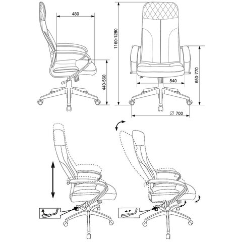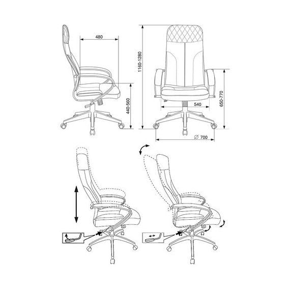Модель оснащена механизмом качания "Top-Gun" с регулировкой под вес и возможностью фиксации в рабочем положении.