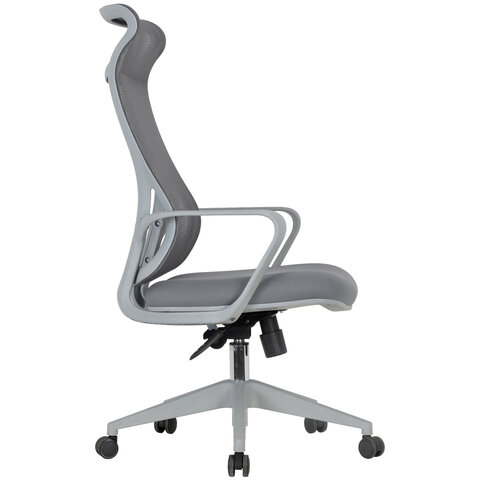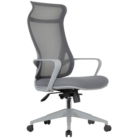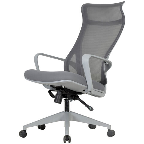 Высокая спинка повторяет естественный изгиб тела и поддерживает правильное положение в кресле. Широкое сиденье обеспечивает комфорт во время длительной работы. Регулировка высоты сиденья позволяет адаптировать кресло под рост пользователя, а плавный механизм качания с фиксацией в любом положении дает возможность откинуться и расслабиться в перерывах. Обивка сиденья из воздухопроницаемой ткани не изнашивается после длительной эксплуатации. Спинка из сетчатого акрила обеспечивает комфорт и воздухообмен.