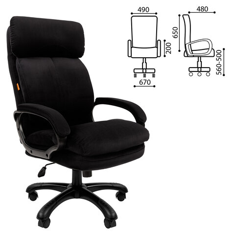Кресло офисное CHAIRMAN СН 505, НАГРУЗКА до 150 кг, велюр, черное, 7127990