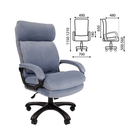 Кресло офисное Chairman СН 505, НАГРУЗКА до 150 кг, велюр, голубое, 7127989