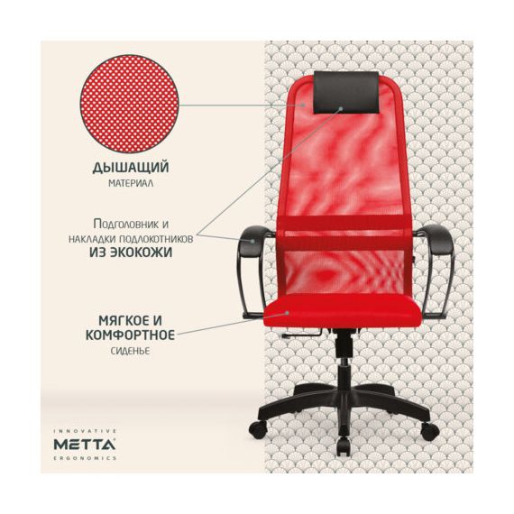 Спинка высокая, эргономичной формы с ярко выраженной поясничной поддержкой.