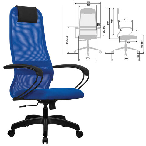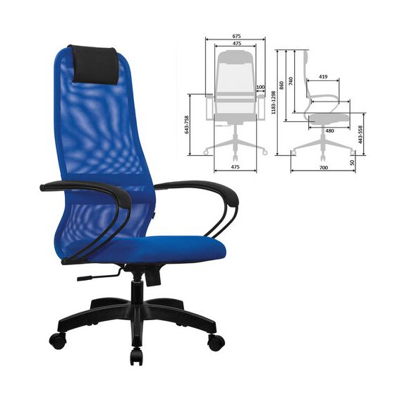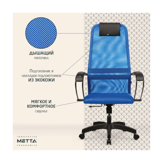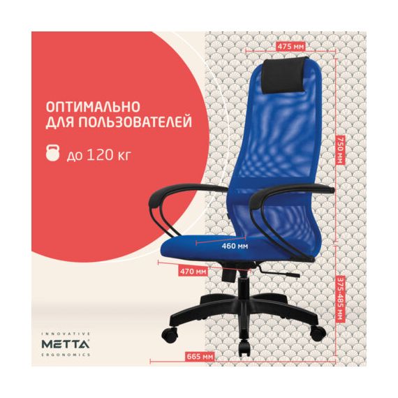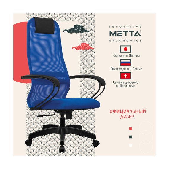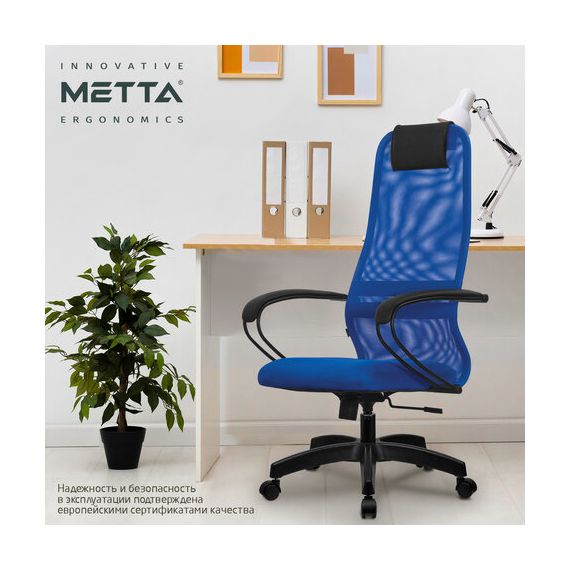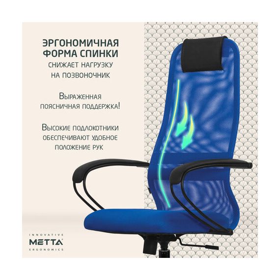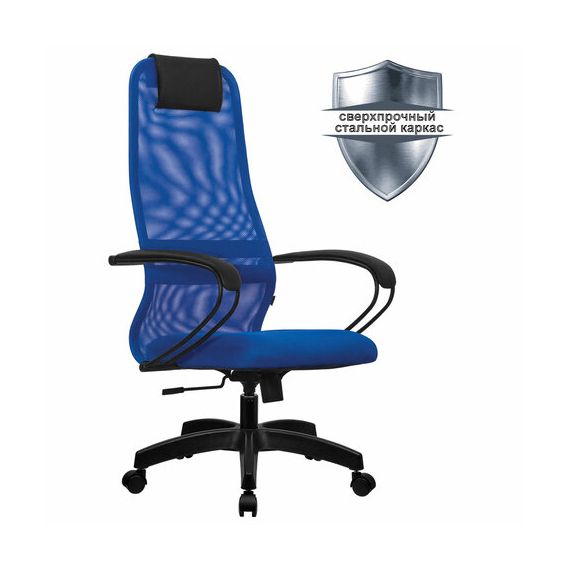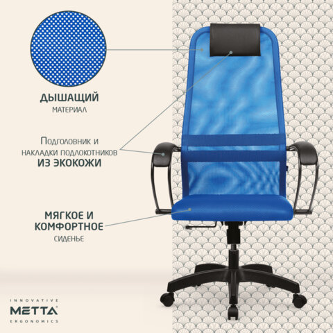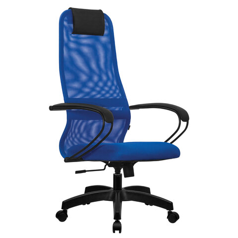 Кресло офисное МЕТТА "SU-B-8" пластик, ткань-сетка, сиденье мягкое, синее