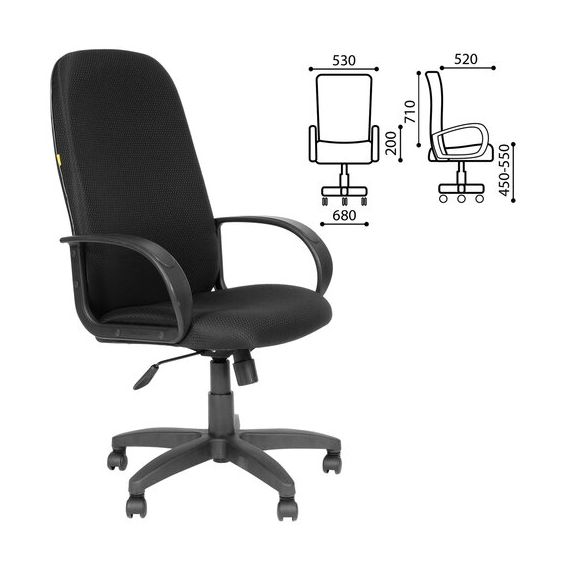 Кресло офисное СН 279, высокая спинка, с подлокотниками, черное, 1138105