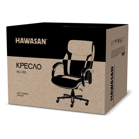 Кресло HAWASAN (ХАВАСАН) "Voyager HD-010", НАГРУЗКА до 180 кг, подножка, экокожа, черное, 532971