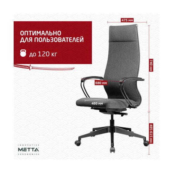 Кресло МЕТТА "ErgoLife" 10 B1-162K, пластик, синхромеханизм, ткань, темно-серое