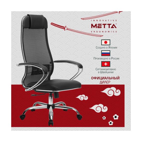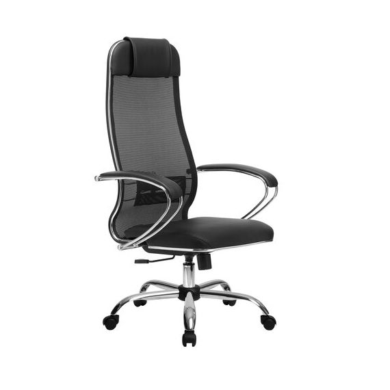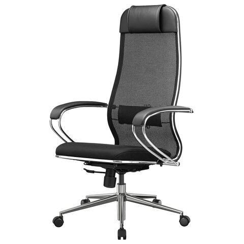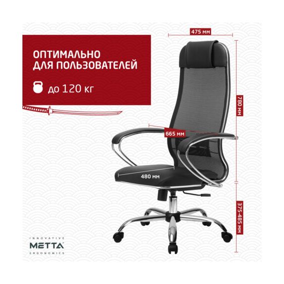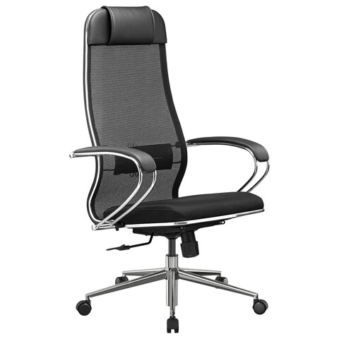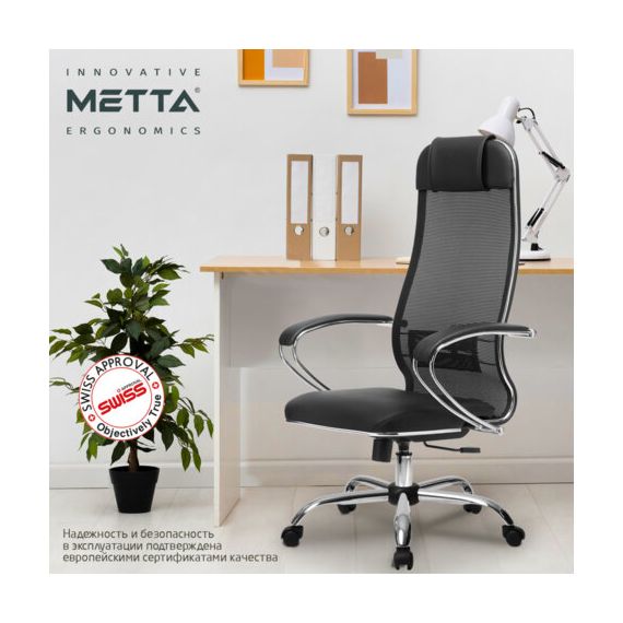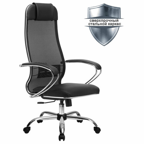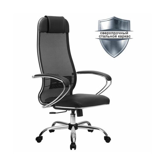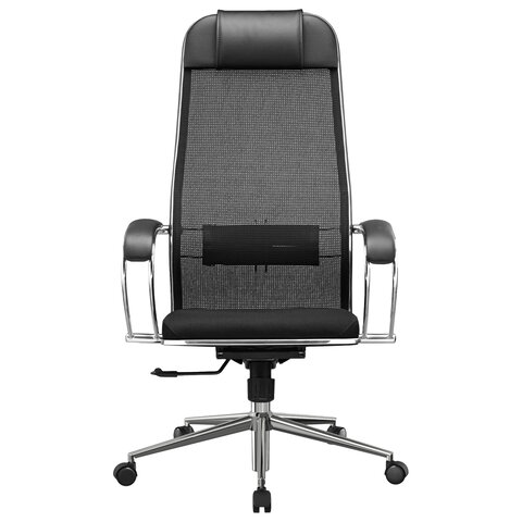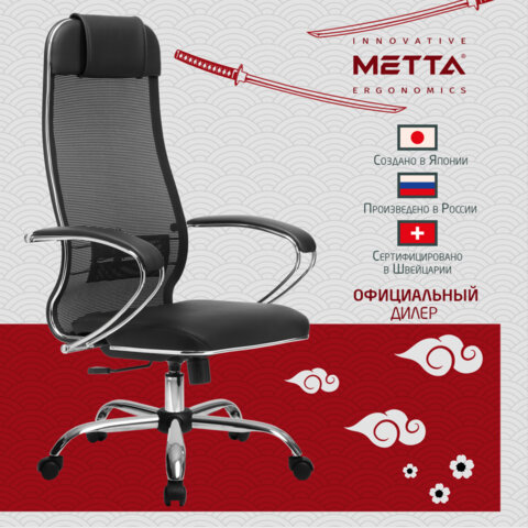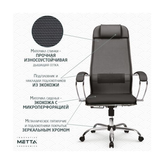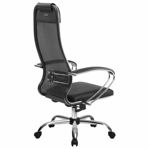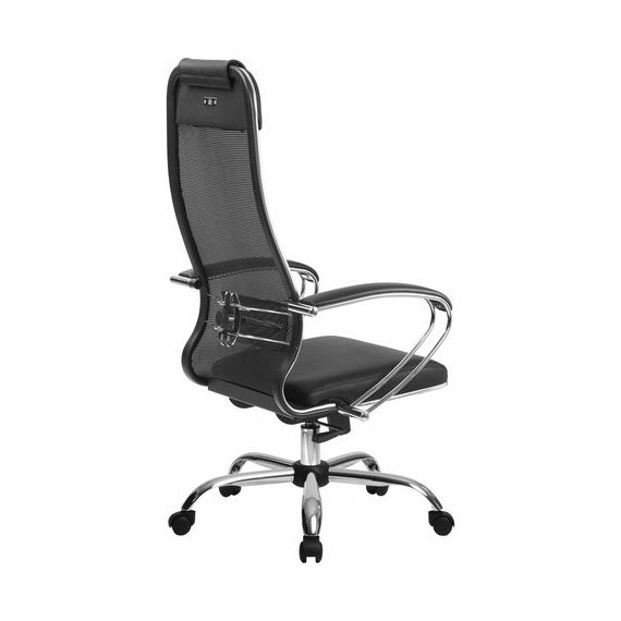 Кресло офисное МЕТТА "К-16" хром, ткань-сетка/экокожа, сиденье мягкое, черное