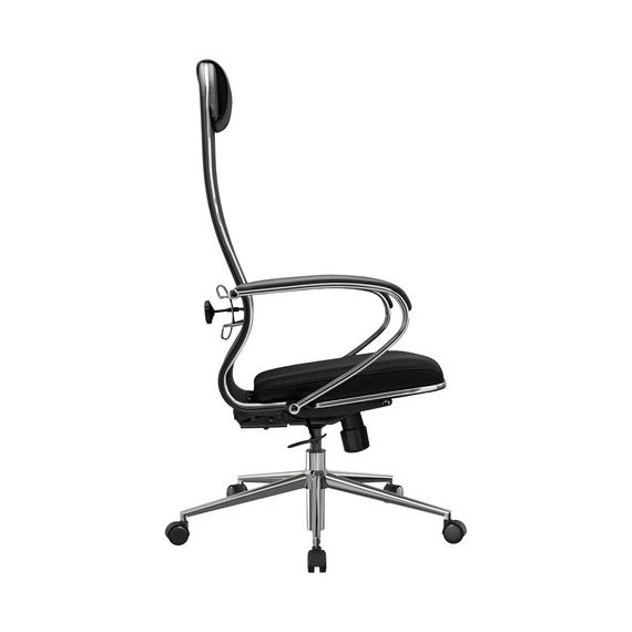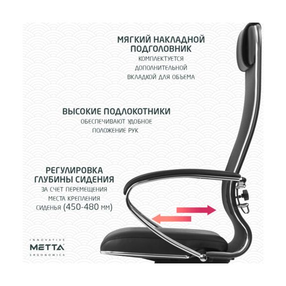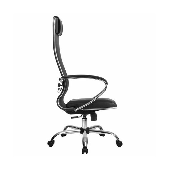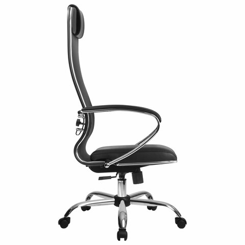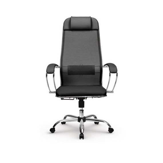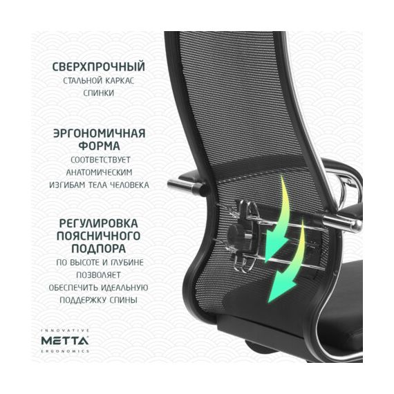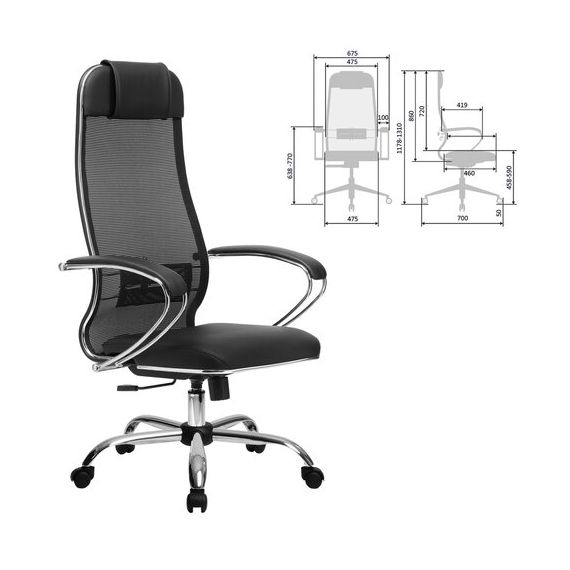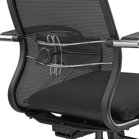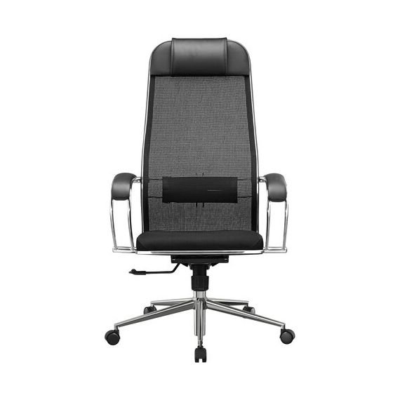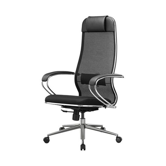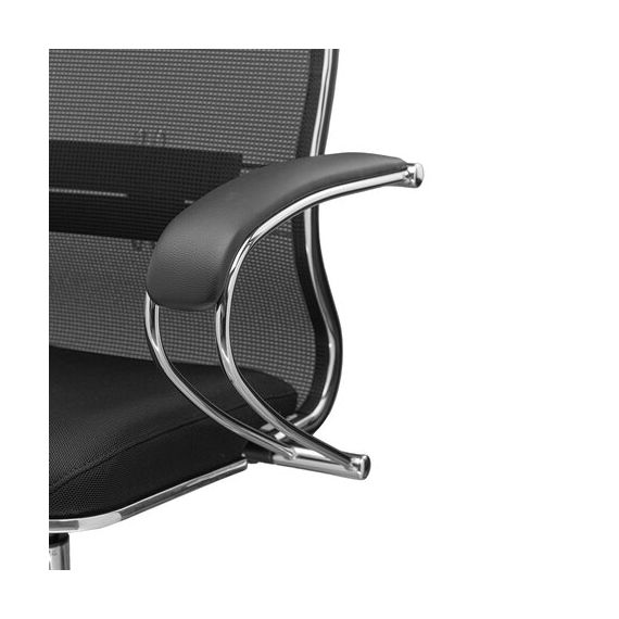 Кресло офисное МЕТТА "К-16" хром, ткань-сетка/экокожа, сиденье мягкое, черное