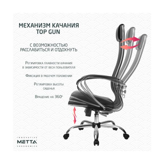 Модель оснащена механизмом качания "Top-Gun" с регулировкой под вес и возможностью фиксации в рабочем положении.