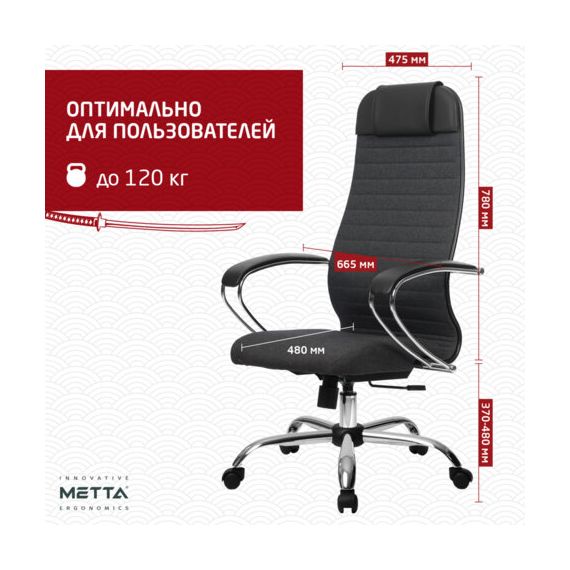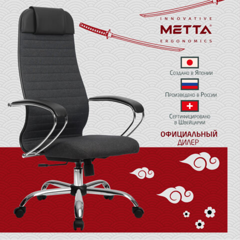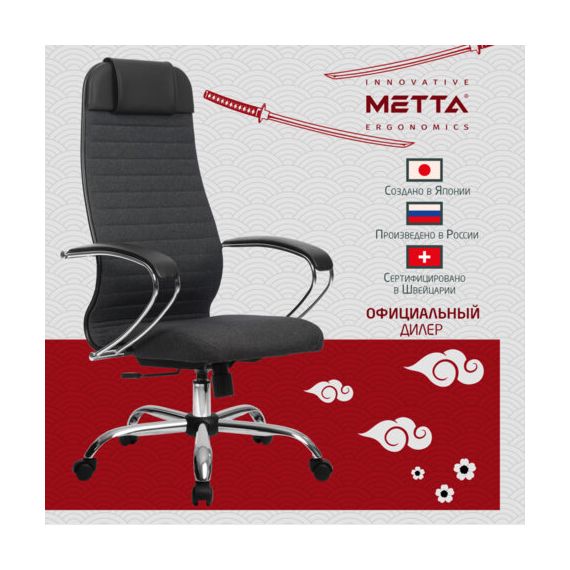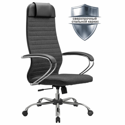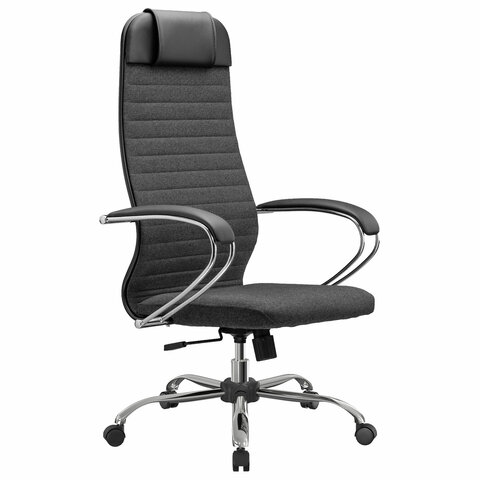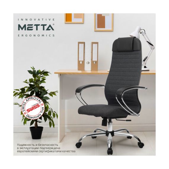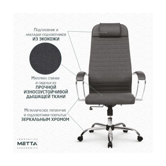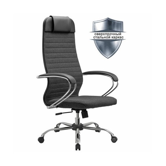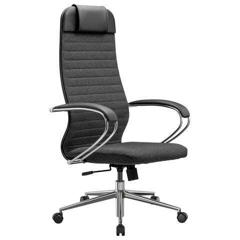 Кресло офисное МЕТТА "К-27" хром, ткань, сиденье и спинка мягкие, серое