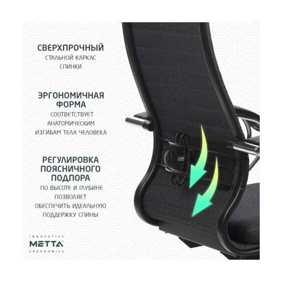 Спинка имеет стальной регулируемый поясничный подпор.