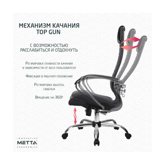 Модель оснащена механизмом качания "Top-Gun" с рамой крепления (TG1.0), с регулировкой под вес и возможностью фиксации в рабочем положении.