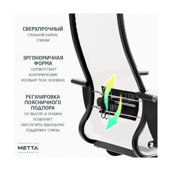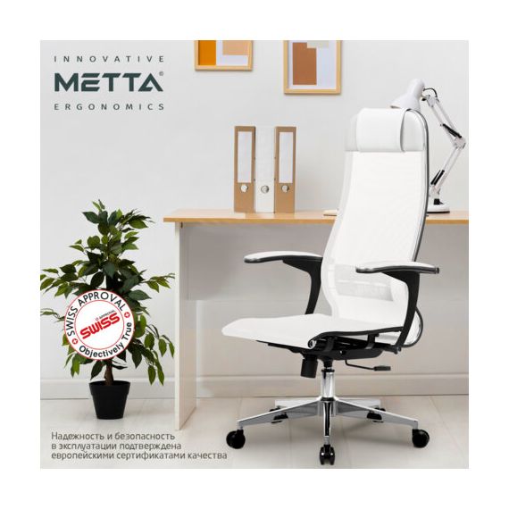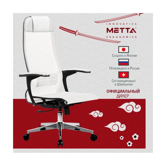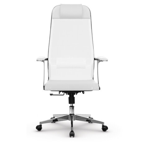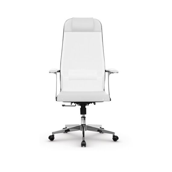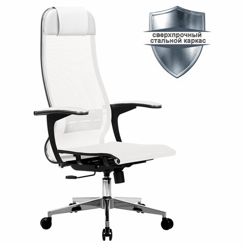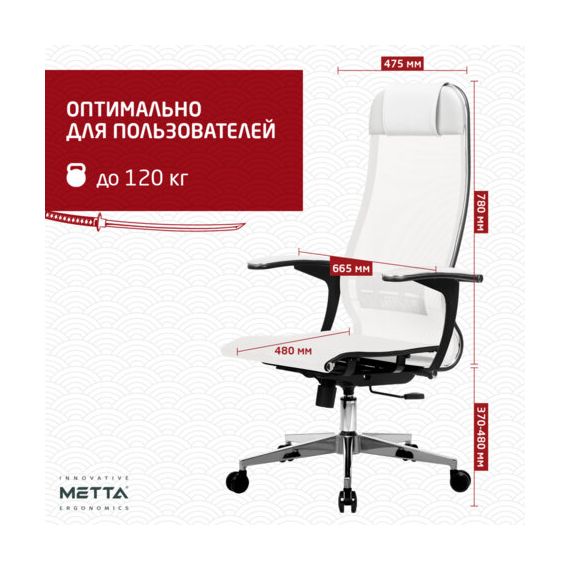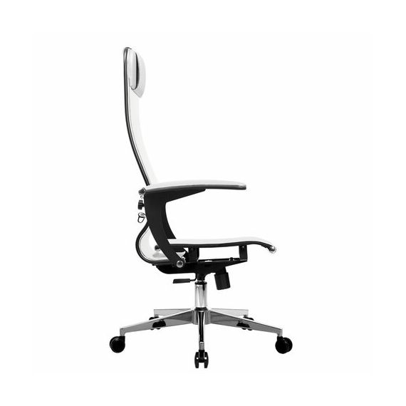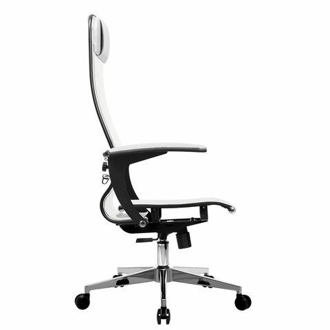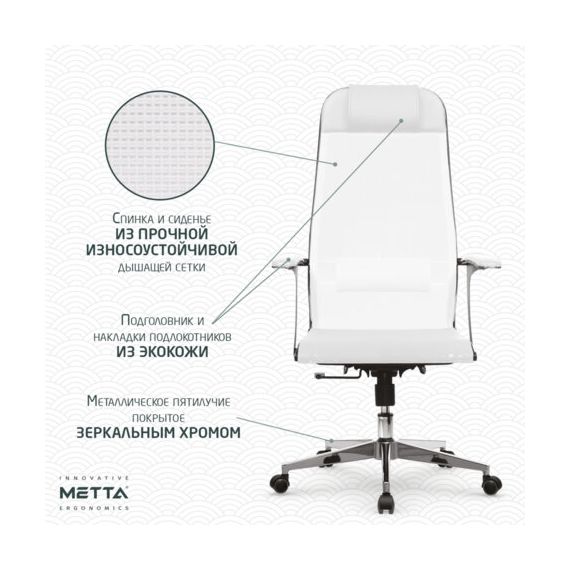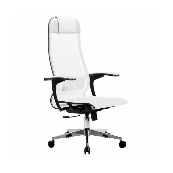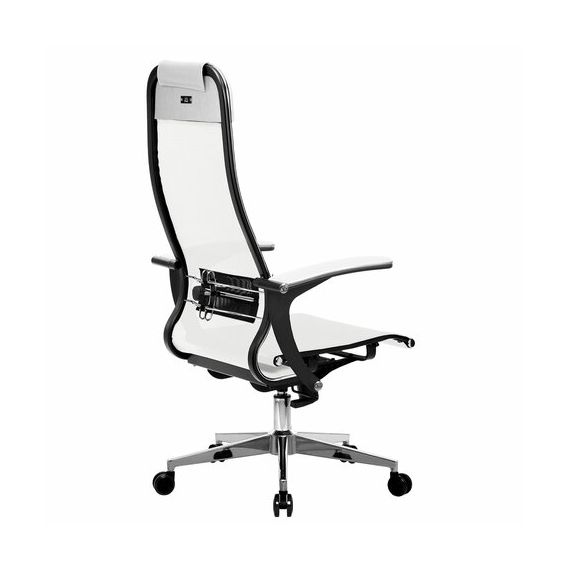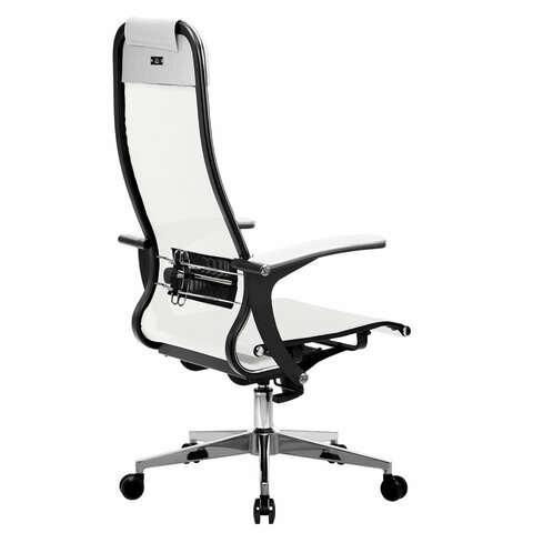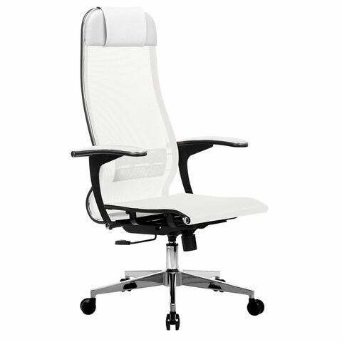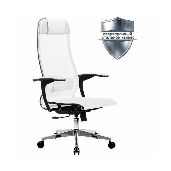Кресло офисное МЕТТА "К-4-Т" хром, прочная сетка, сиденье и спинка регулируемые, белое