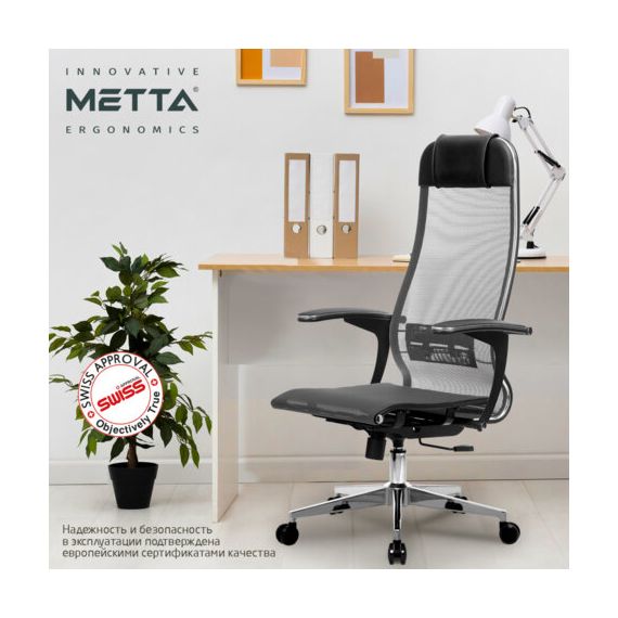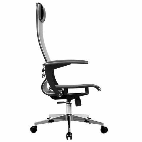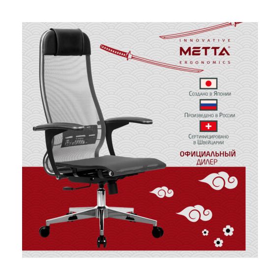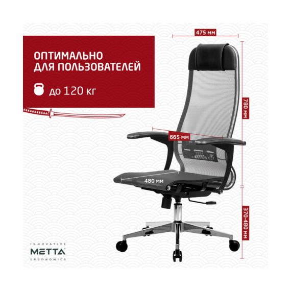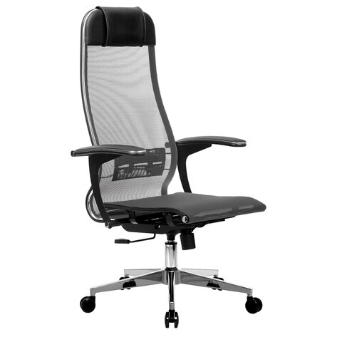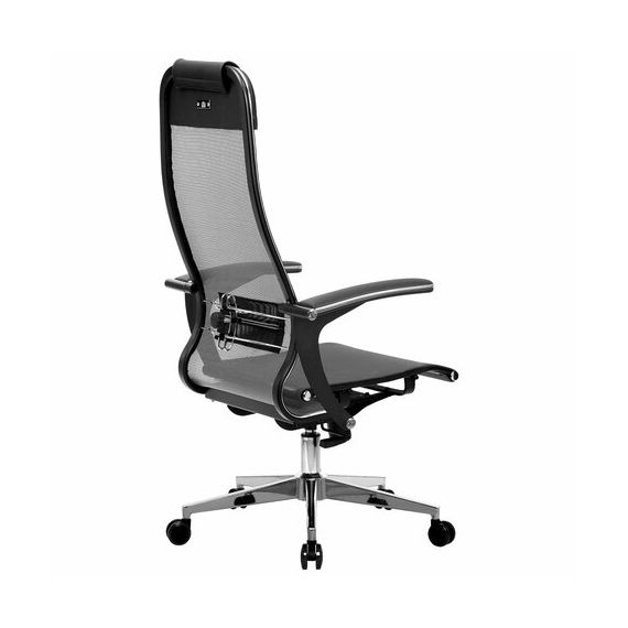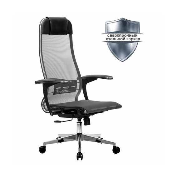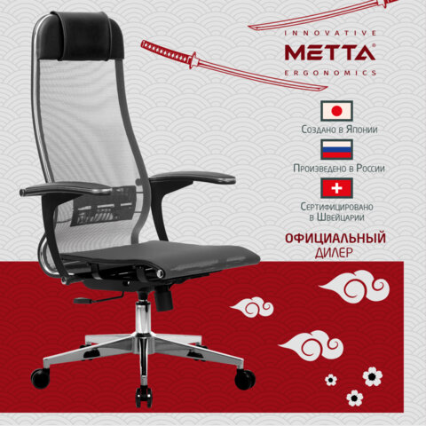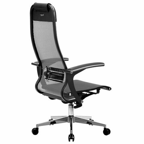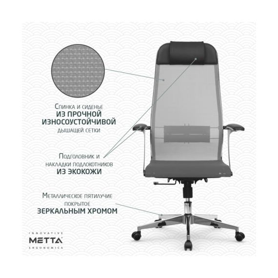Кресло офисное МЕТТА "К-4-Т" хром, прочная сетка, сиденье и спинка регулируемые, серое