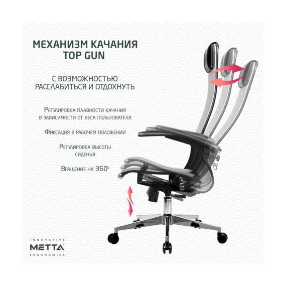 Модель оснащена механизмом качания "Top-Gun" с регулировкой под вес и возможностью фиксации в рабочем положении.