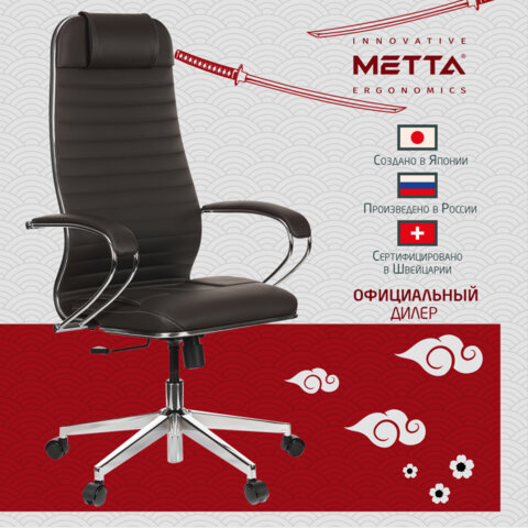 Кресло офисное МЕТТА "К-6" хром, экокожа, сиденье и спинка мягкие, темно-коричневое