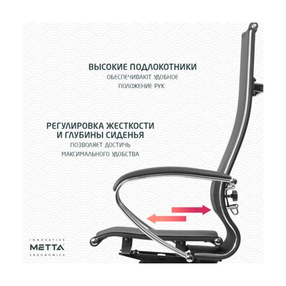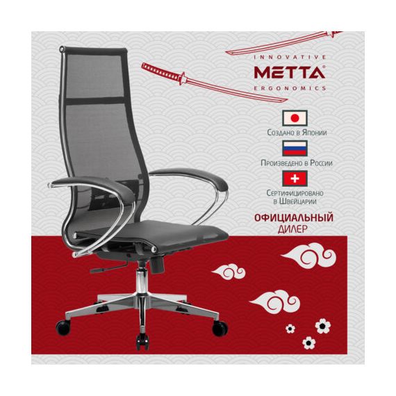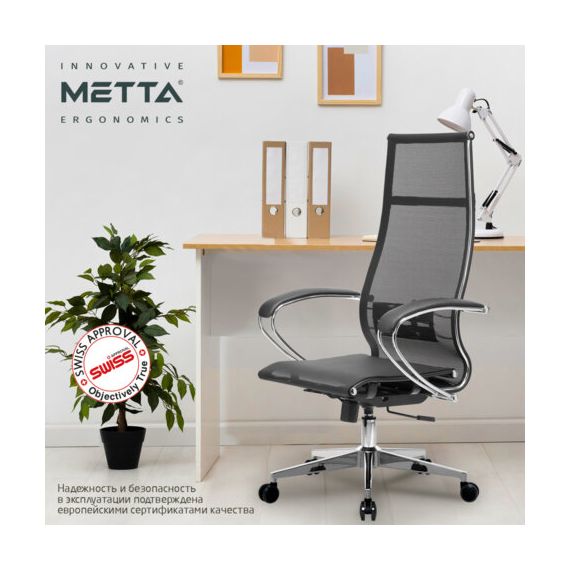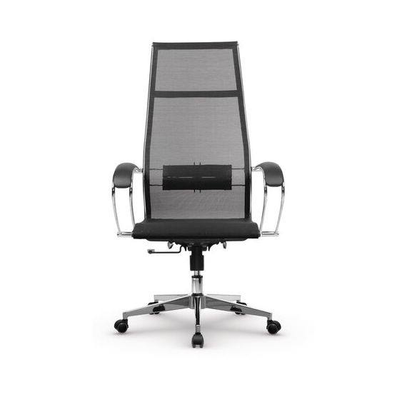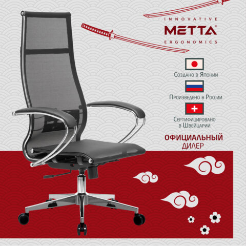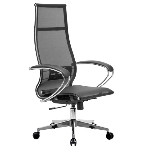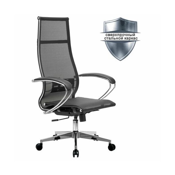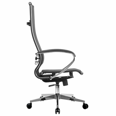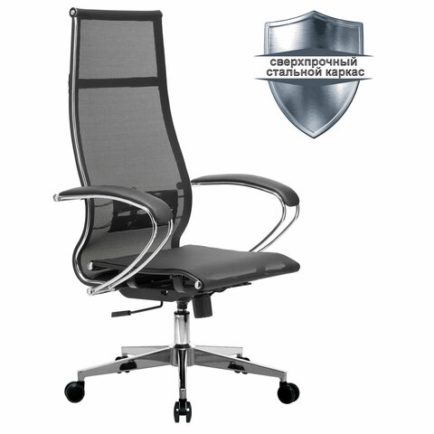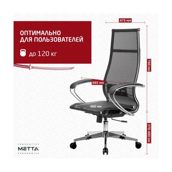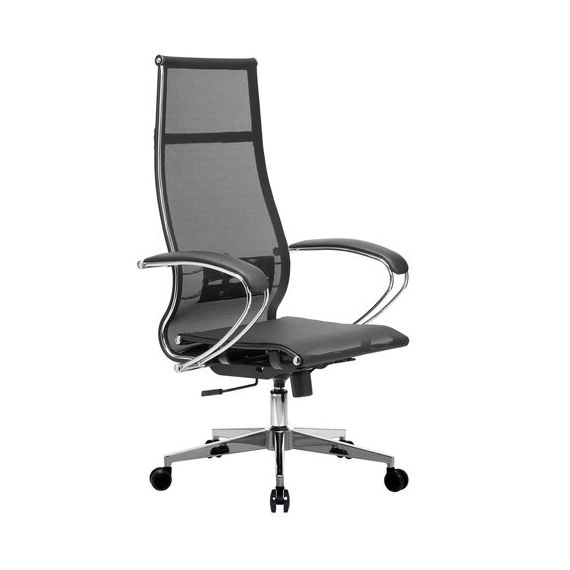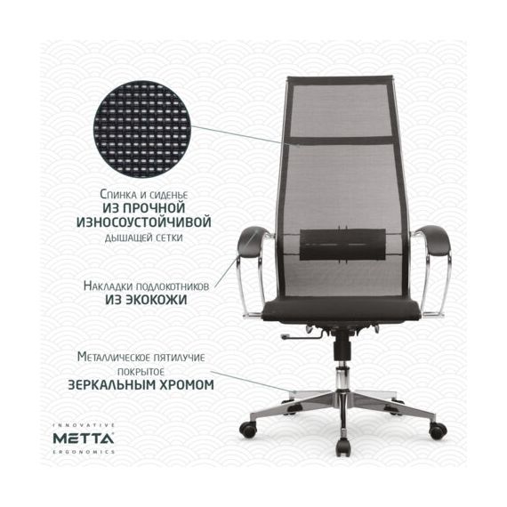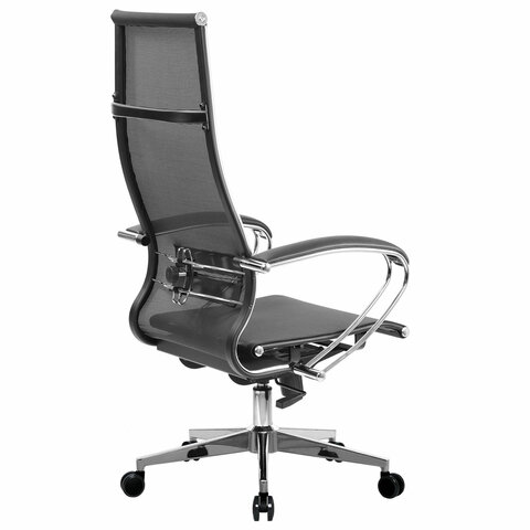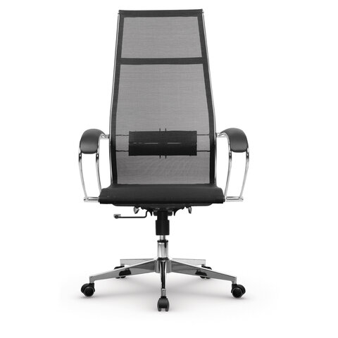 Кресло офисное МЕТТА "К-7" хром, прочная сетка, сиденье и спинка регулируемые, черное