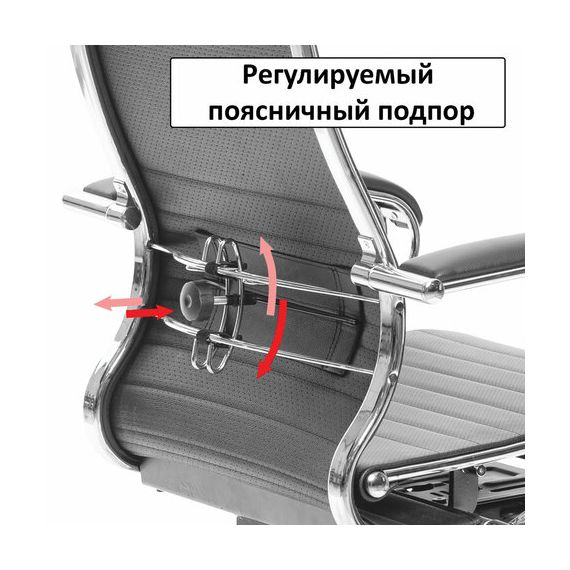 Спинка имеет стальной регулируемый поясничный подпор.