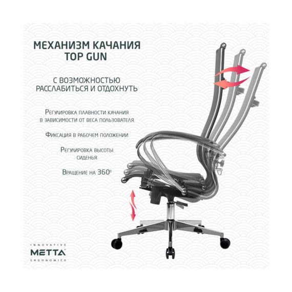 Модель оснащена механизмом качания "Top-Gun" с регулировкой под вес и возможностью фиксации в рабочем положении.