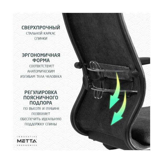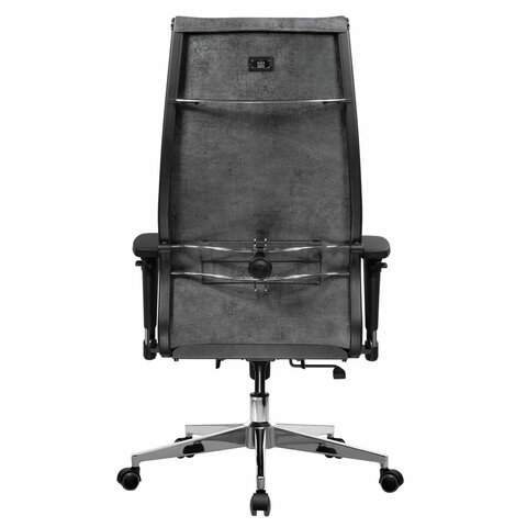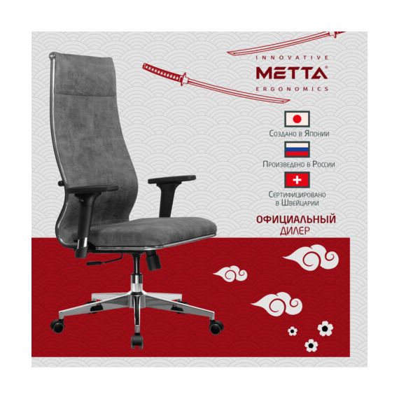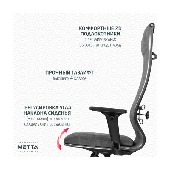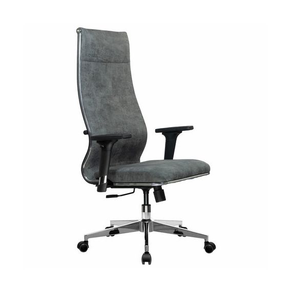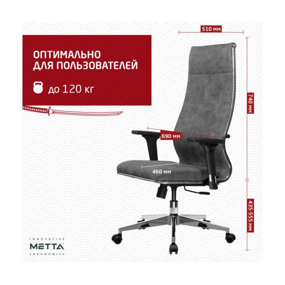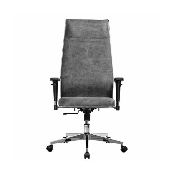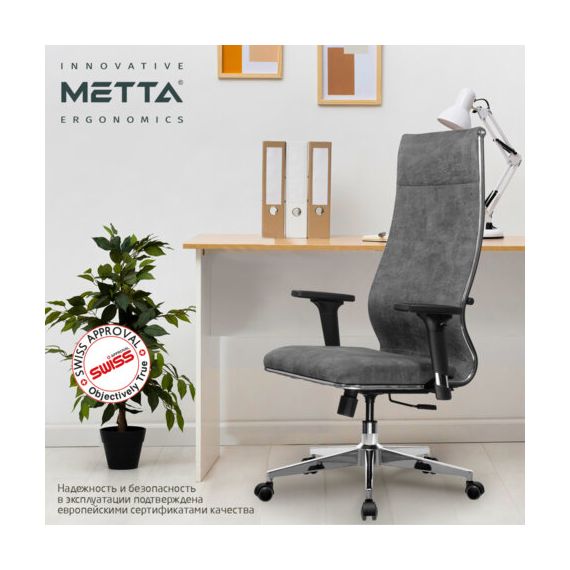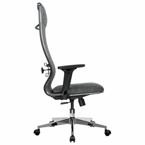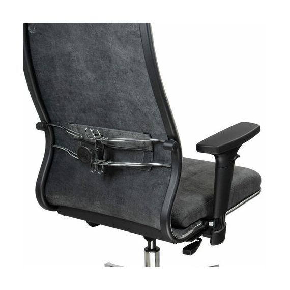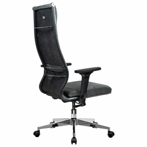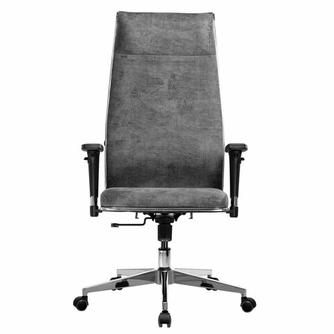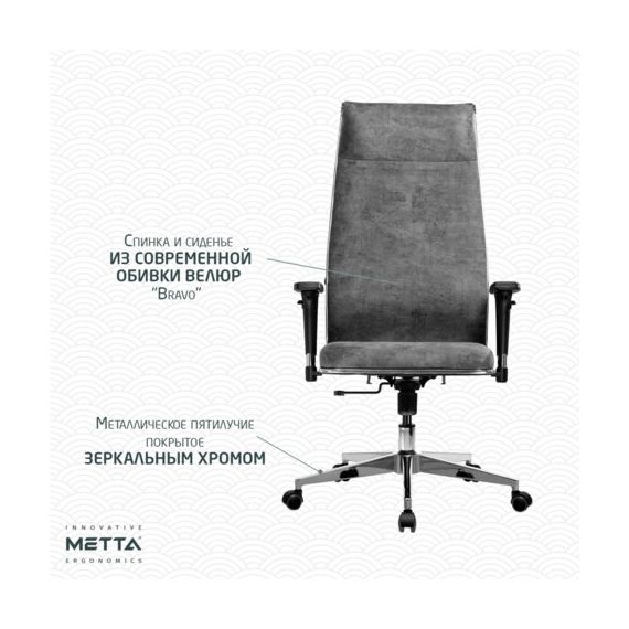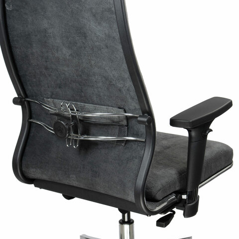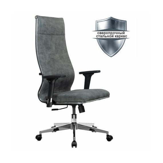 Кресло офисное МЕТТА "L1m 42/2D", хром, 2D-подлокотники, сиденье и спинка мягкие, велюр, темно-серое