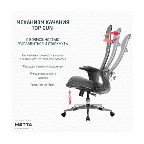 Модель оснащена механизмом качания "Top-Gun" с регулировкой под вес и возможностью фиксации в рабочем положении.