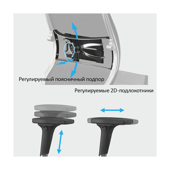 Комфортные 2D-подлокотники с регулировками: высоты, вперед-назад.