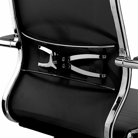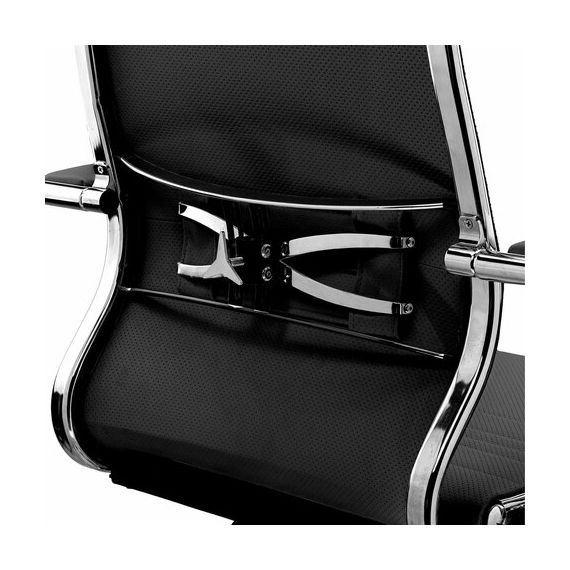 Регулируемый поясничный подпор: 3D-пластинчатый стальной хромированный с ремнем из перфорированной экокожи Extra. Зеркальное литое пятилучие.