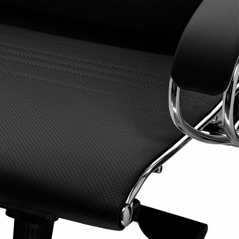Сверхпрочный стальной каркас обеспечивает надежность кресла, а покрытие зеркальным хромом придает привлекательный вид.