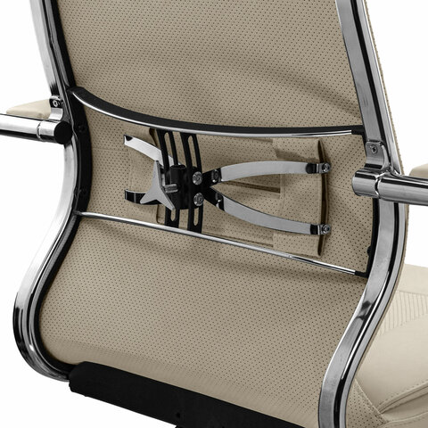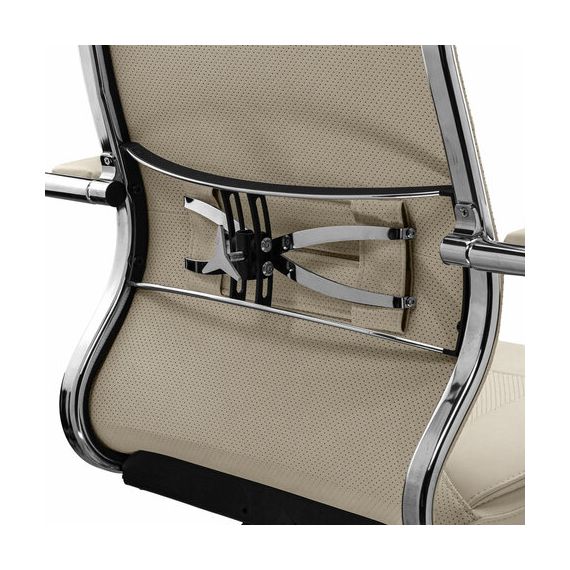 Регулировка жесткости поясничной поддержки: пластинчатый стальной хромированный 3D-подпор с ремнем из перфорированной экокожи Extra.