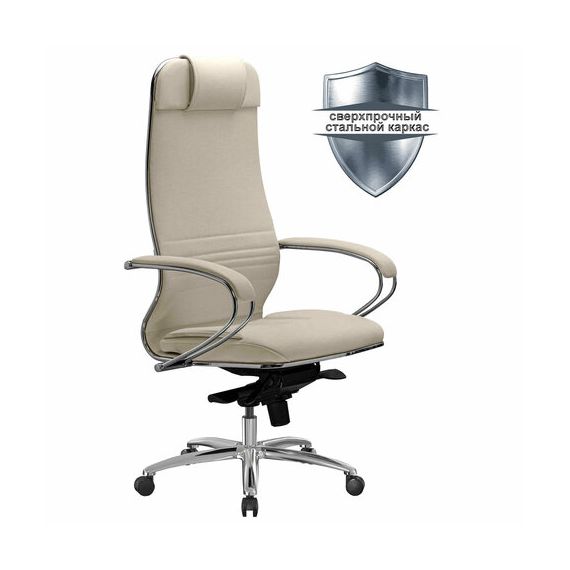 Сверхпрочный стальной каркас обеспечивает надежность кресла, а покрытие зеркальным хромом придает привлекательный вид.